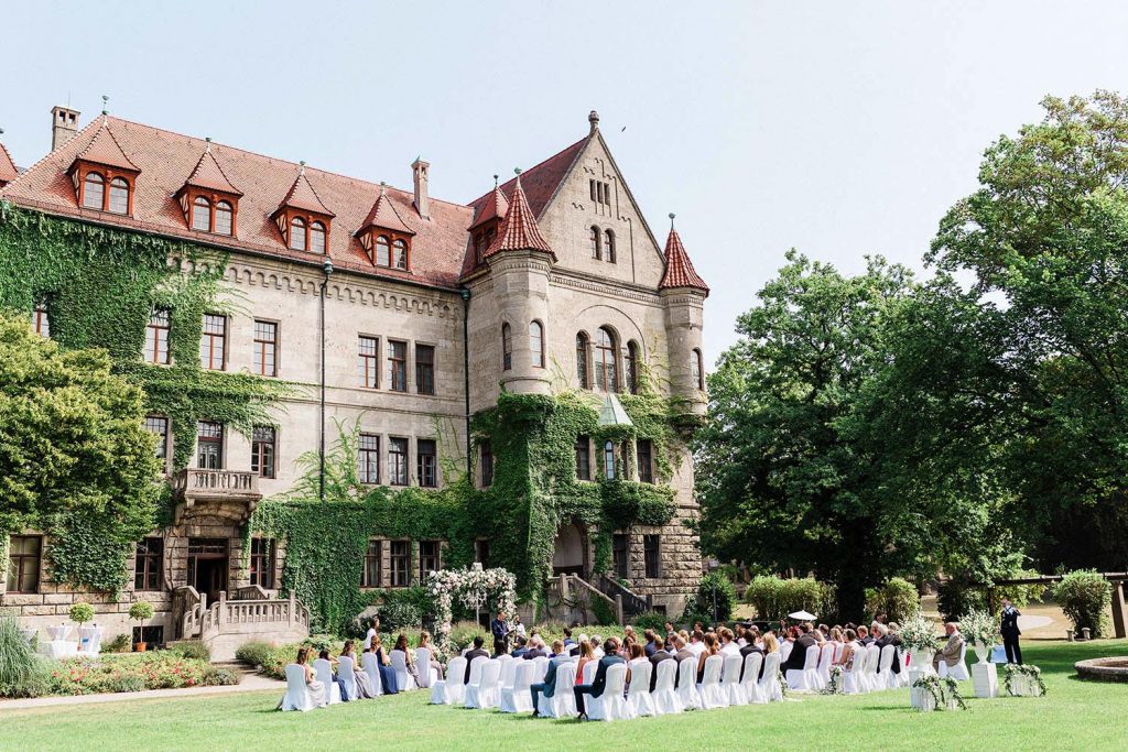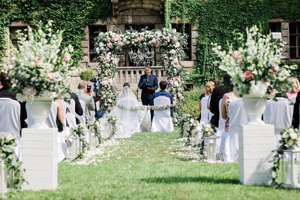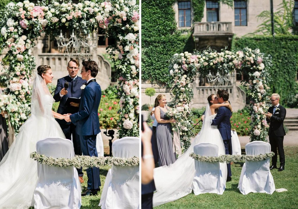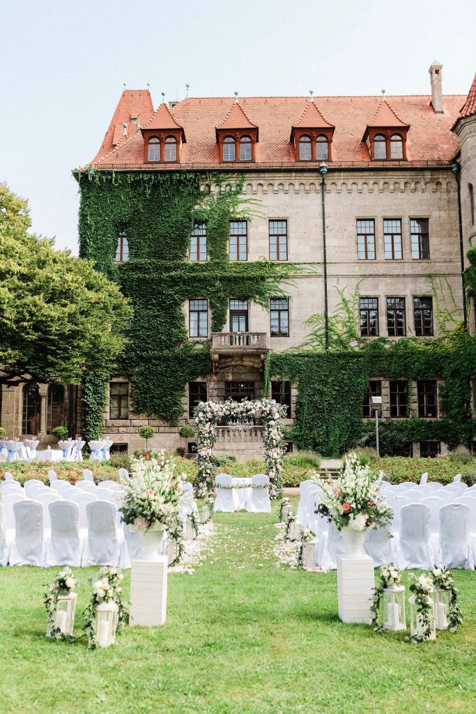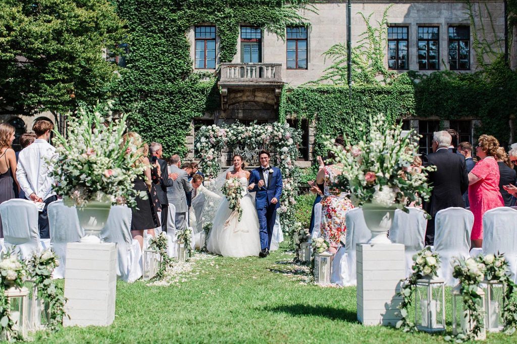 Ich durfte im Sommer letzten Jahres der großartigen Charley King von Bluebelle Events aus Los Angeles bei einer ihrer Hochzeiten hier in Deutschland assistieren. Ihr Brautpaar lebt in Kalifornien, wo auch seine erste Hochzeit stattfand, und zwar im berühmten The Resort At Pelican Hill. Da der Bräutigam eigentlich aus Franken stammt, wollten die beiden auch hier nochmal für alle Verwandten und Freunde, die nicht mit in die USA kommen konnten, ein Fest ausrichten. Und ich kann nur sagen: “Was für eins”. Die freie Trauung wurde bei strahlendem Sonnenschein im Schlossgarten des Schlosses Faber-Castell in Stein zelebriert, mit typischen deutschen Traditionen wie Baumstamm-Sägen und Tauben fliegen lassen beim dortigen Sektempfang. Das hatte sich die amerikanische Braut auch genau so gewünscht. Nach einer auch typisch bayerischen Brautentführung in die City von Nürnberg ging es dann mit dem festlichen Bankett mit 5-Gänge-Menü im Le Meridian Grand Hotel weiter, gefolgt von einer grandiosen Party im Anschluss. Der Robert-Wagner-Saal bildete dazu den perfekten prunkvollen Rahmen.