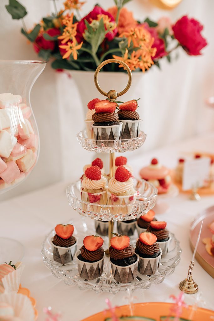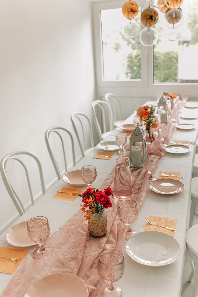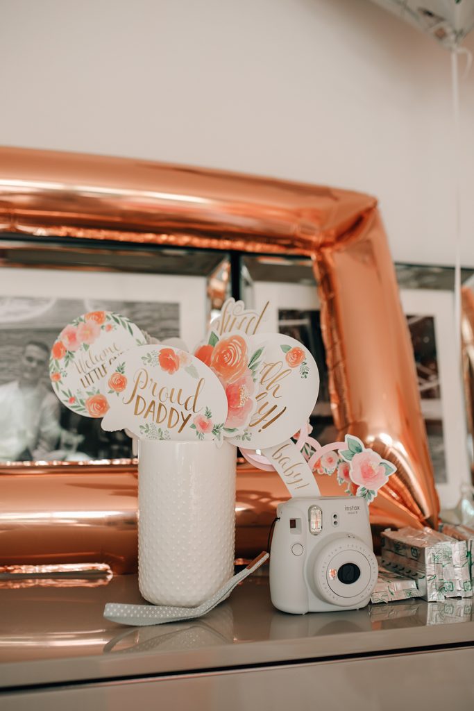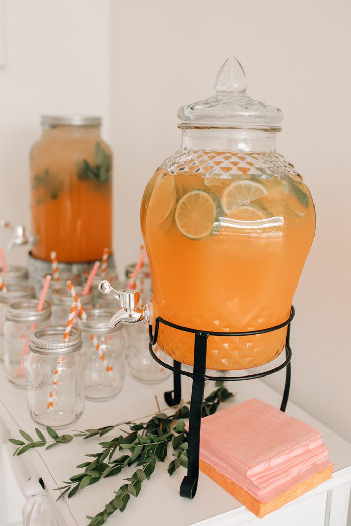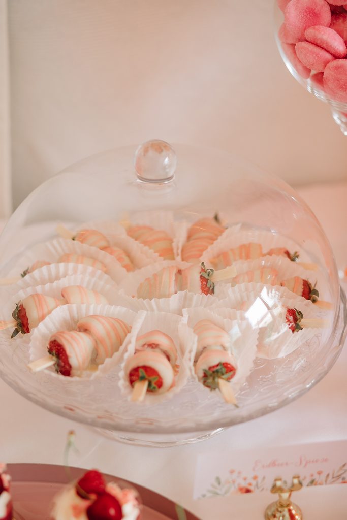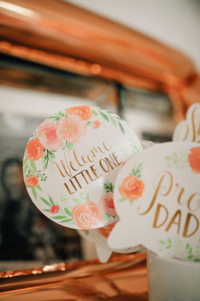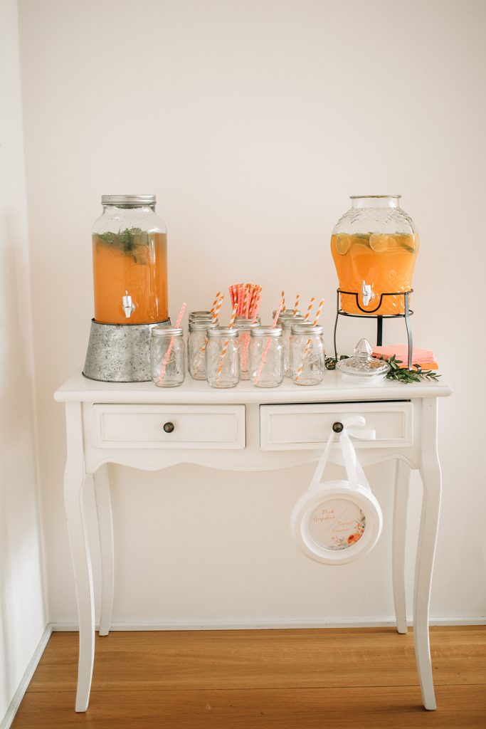 Julia & Christian wünschten sich eine Baby Shower in Sorbetfarben – also Pfirsich- und Rosatöne, etwas Pink und Orange als Akzente. Zentrale Deko sollte ein Sweet Table mit allerlei süßen Köstlichkeiten sein. Gesagt, getan! An einem Samstag im Juli haben wir dann alles vorbereitet – weiße Bentwood Chairs wurden geliefert, Torte & Sweets (Cup Cakes, Éclairs, Tarteletts, Macarons) abgeholt, Luftballons und Girlanden aufgehängt und eine Limonadenbar aufgebaut. Um den Sweet Table so richtig zur Geltung zu bringen, haben wir vor Ort eine moderne Ballongirlande als “Rahmen” installiert. Als die Freundinnen dann am Nachmittag eintrafen, wurde erstmal mit Sekt (für die Braut natürlich ohne Alkohol) angestoßen und viele Fotos gemacht… Die Mädels und Mamas hatten einen unvergesslichen Nachmittag mit Spielen, Torte, Limo und Sekt…