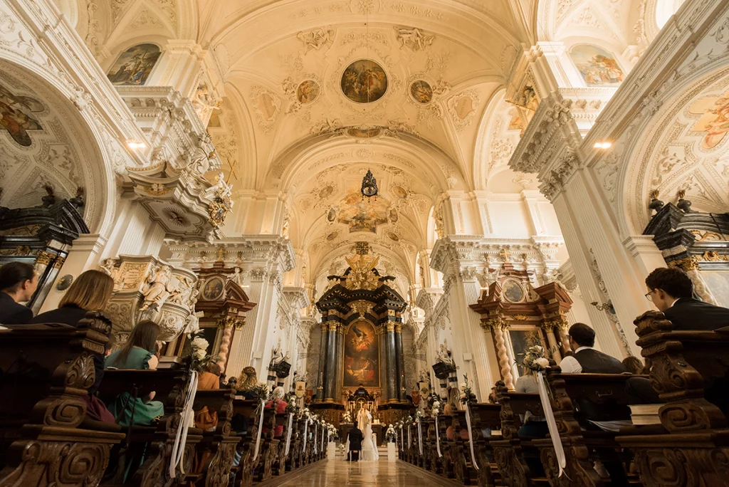 Eine Trauung in einer Wallfahrtskirche ist oft von einer besonderen und ehrwürdigen Atmosphäre geprägt, die viele Menschen als tief bewegend und spirituell empfinden.