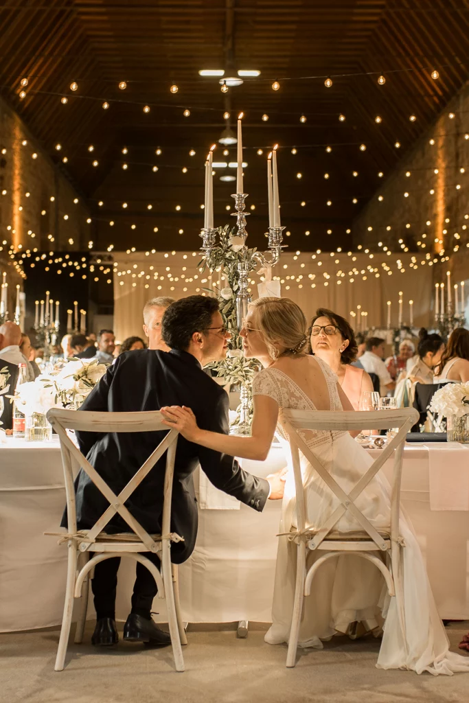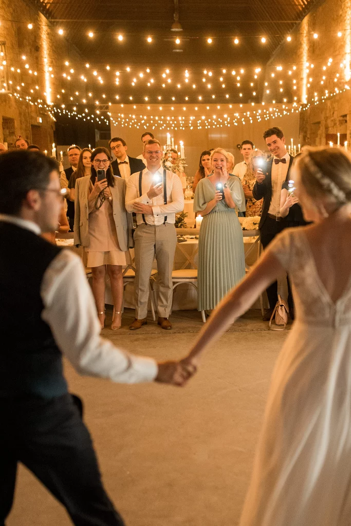 Um die romantische Stimmung noch zu verstärken, waren unendlich viele Lichterketten in der Stallung angebracht. Das Lichtermeer tauchte den Raum in einen warmen Glanz und sorgte dafür, dass die Feier bis in die Nacht hinein ihre bezaubernde Atmosphäre behielt.