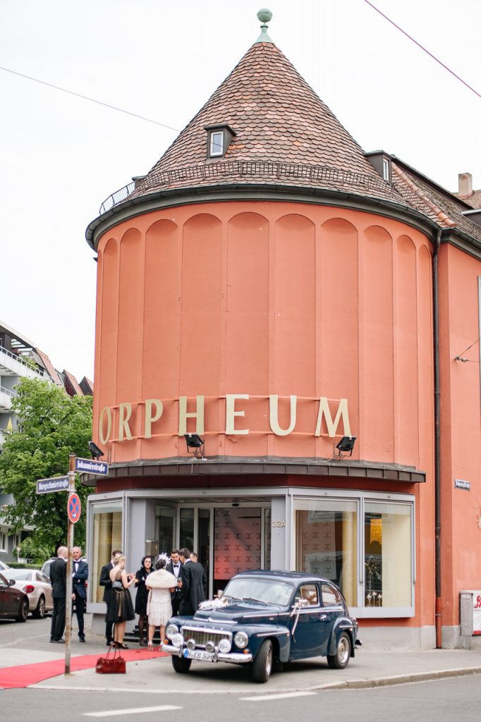 Im Anschluss an die kirchliche Segnung in der Egidienkirche erwartete die Gäste ein spektakuläres Fest in einem alten Kino, das für diesen Anlass in ein authentisches Ambiente der 20er Jahre verwandelt wurde. Mit einer Mischung aus Vintage-Charme und dem Glamour der “Golden 20s” bot diese einzigartige Location den perfekten Rahmen für eine glamouröse Gatsby Hochzeit.