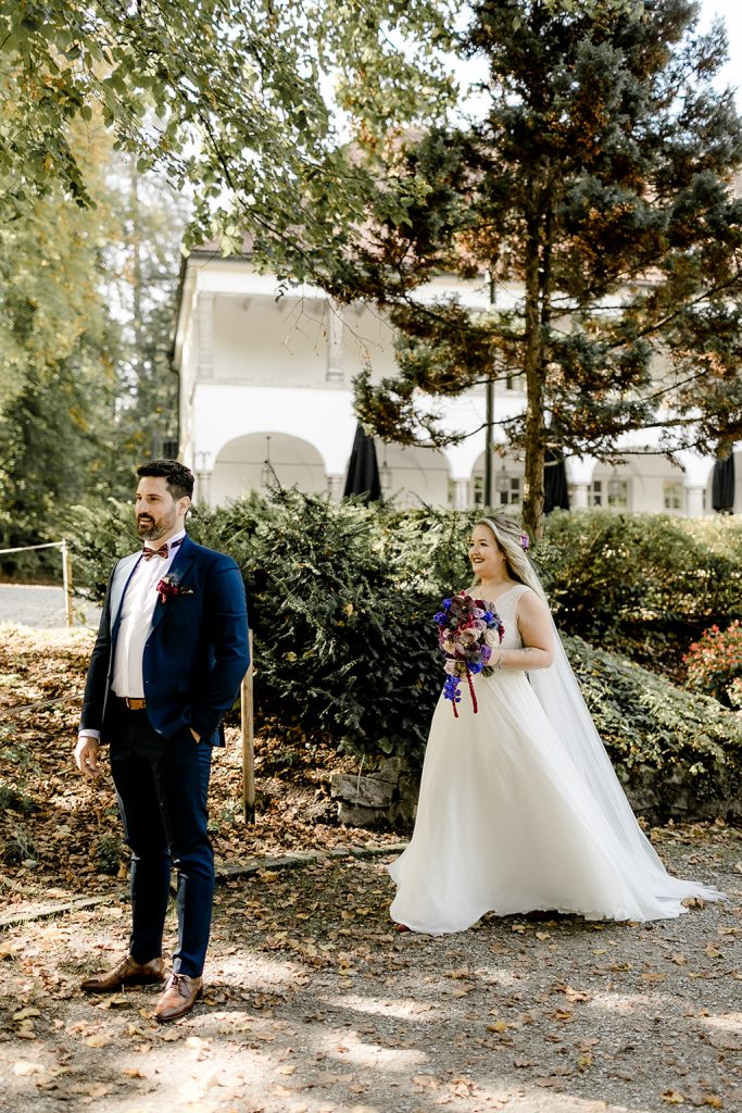 Ihre Wünsche waren: symbolische Hochzeit, kein Ortswechsel zwischen Zeremonie und Empfangsort, kleines Schloss oder ähnlicher Veranstaltungsort, max. 3 Stunden von ihrem Heimatort entfernt. Die Gäste sollten sich nicht langweilen, alles sollte entspannt sein… und das Wichtigste: Es sollten nur die allerengsten Freunde und Familienangehörigen dabei sein. Am Ende waren es inklusive Brautpaar 28 Gäste.
