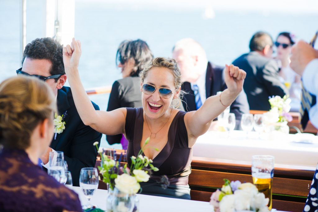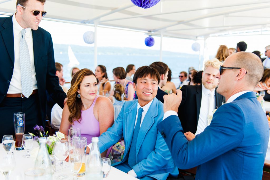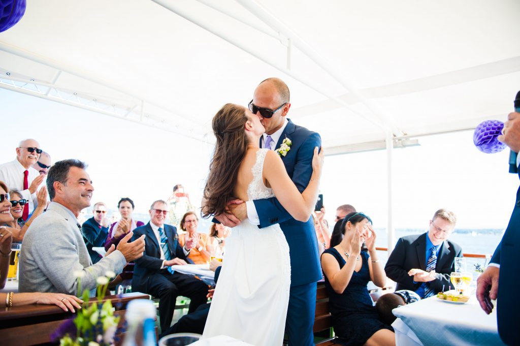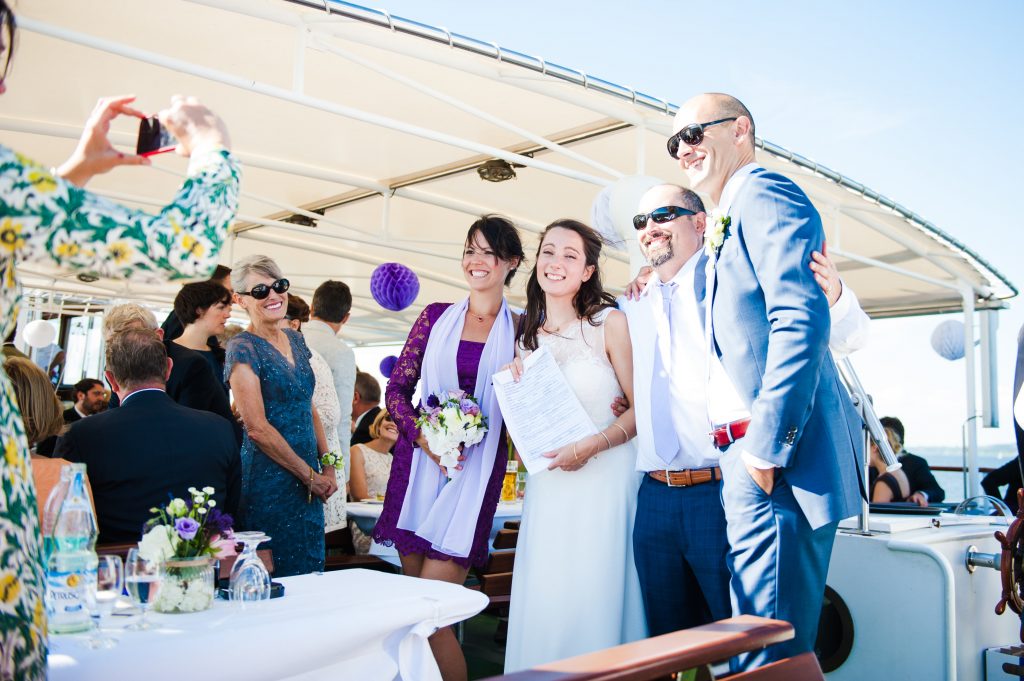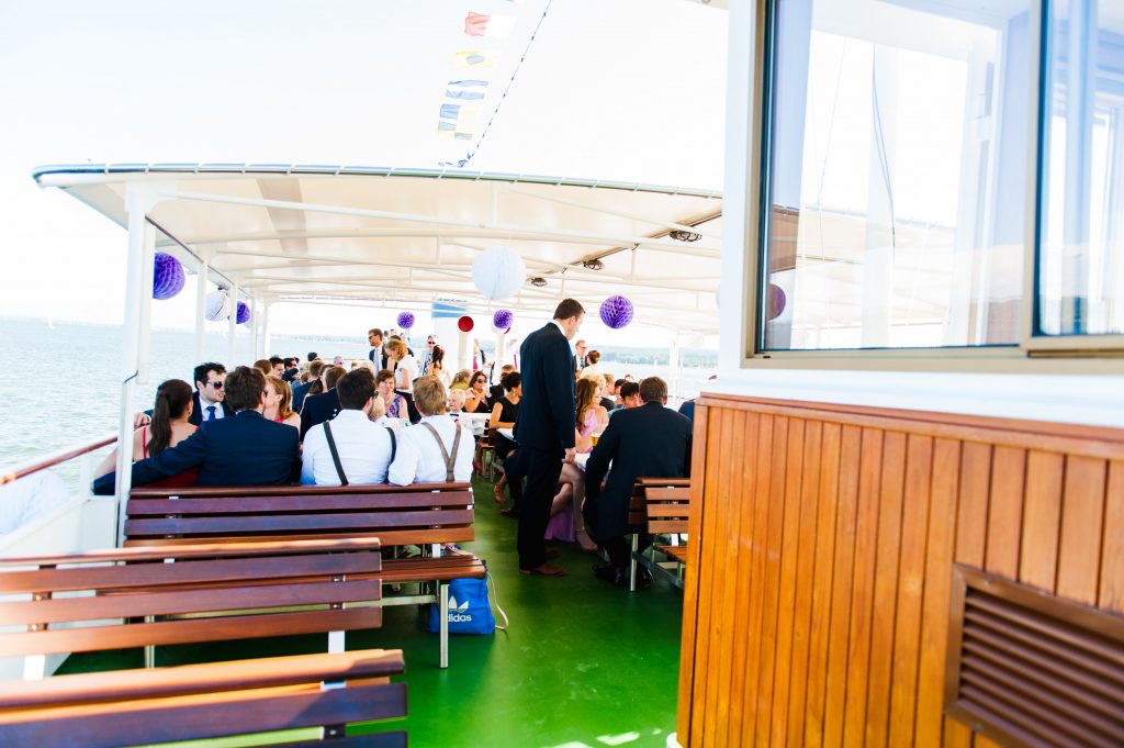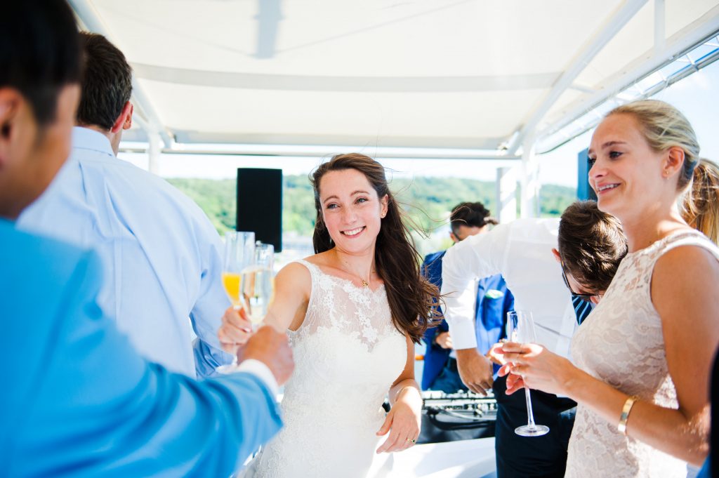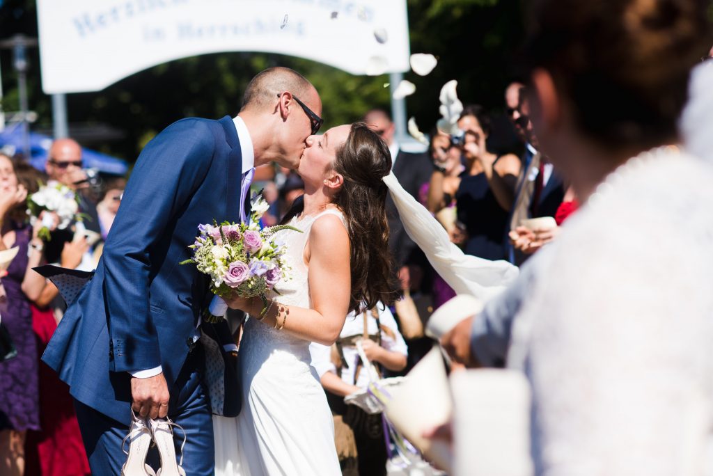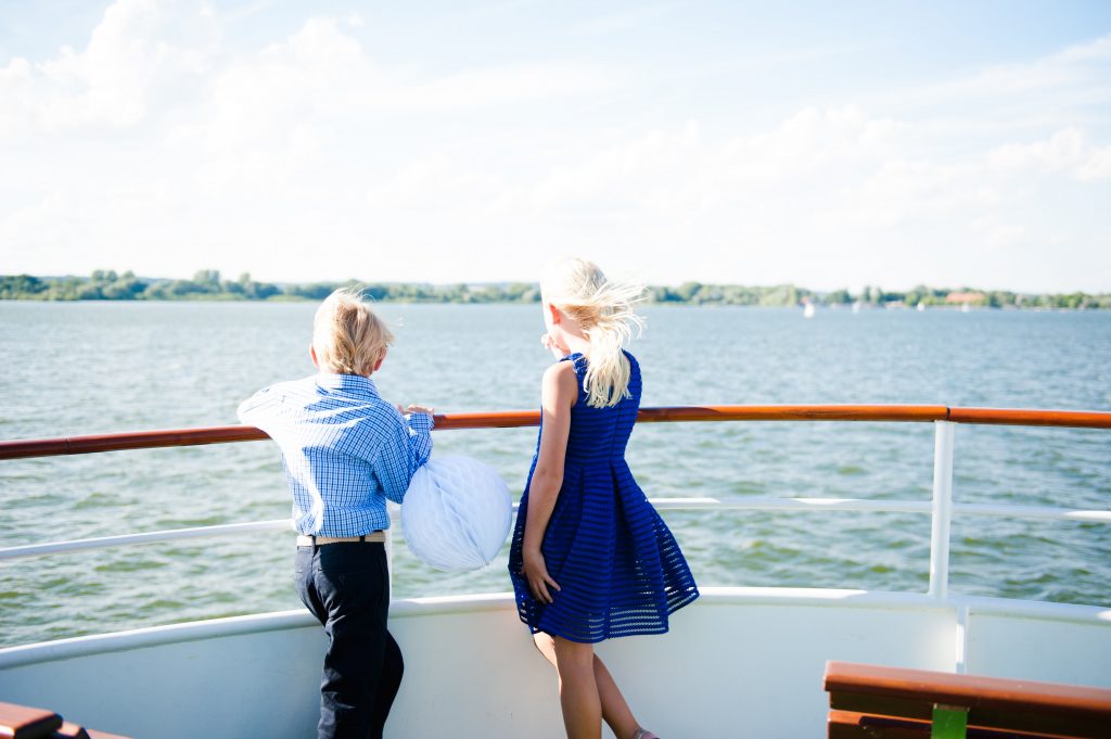 Die Hochzeit begann mit einer kirchlichen Zeremonie, die im malerischen Herrsching stattfand. Nach diesem emotionalen Höhepunkt führte der Weg der Hochzeitsgäste und des Brautpaares zur Schiffsanlegestelle in Herrsching. Von dort aus begab sich das Brautpaar unter Jubel der Gäste an Bord, gefolgt von der gesamten Hochzeitsgesellschaft und die Seerundfahrt auf dem glitzernden Ammersee konnte beginnen. Dafür haben wir übrigens eigens die MS Augsburg gechartert.