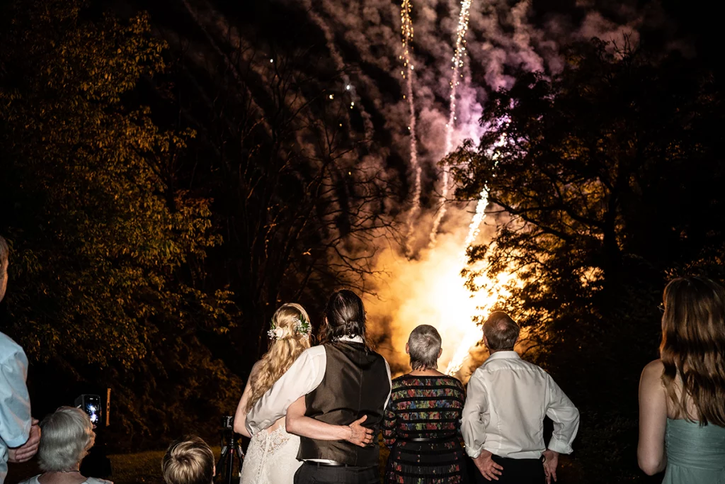 Ein spektakuläres Feuerwerk krönte diesen besonderen Tag und tauchte den Nachthimmel in ein funkelndes Spektakel. Doch damit nicht genug – an Mitternacht stand das nächste Highlight an. Denn unsere Braut konnte um 00 Uhr mit allen Hochzeitsgästen auf ihren Geburtstag anstoßen. Was für ein Fest!