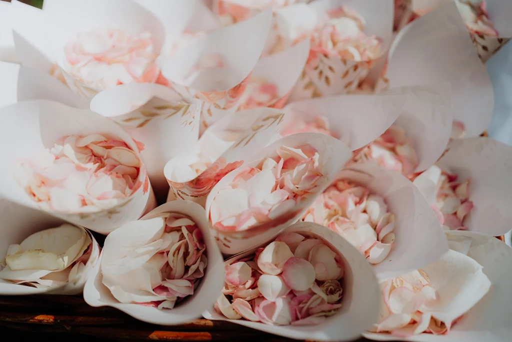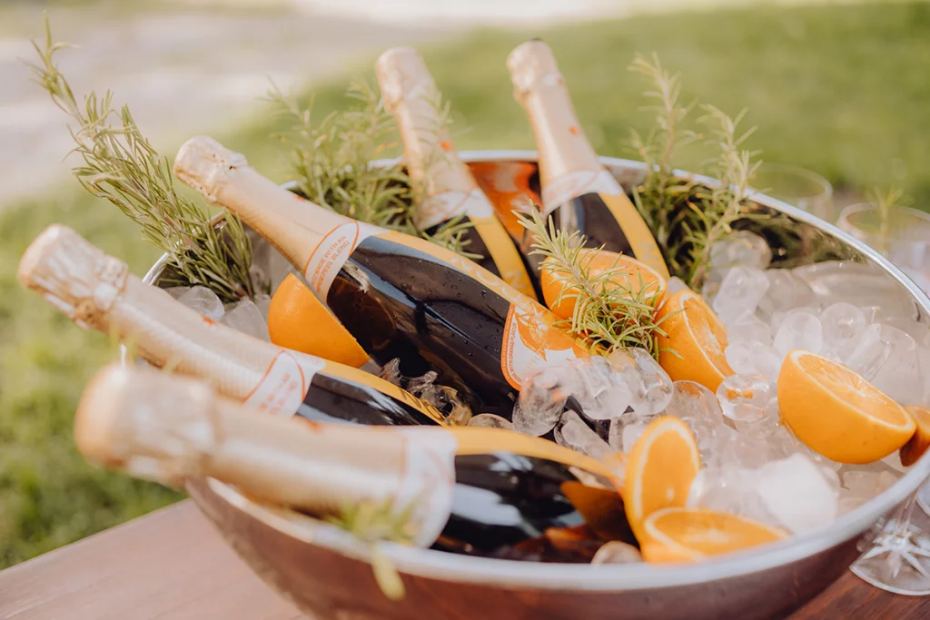 Als Hochzeitsplaner und Wedding Designer lieben wir es, die Persönlichkeit unserer Brautpaare an ihrem Hochzeitstag zum Ausdruck zu bringen. Daher war die Liebe zu England auch bei anderen Details sichtbar. So beinhalteten die Willkommenstaschen für die Gäste die britische Orangen-Lieblingsmarmelade der Braut, Wilkin & Sons ‘Tawny’ Orangen Marmelade und während des Dinners im floral üppig dekorierten Kuhstall spielte eine irische Folk-Band.