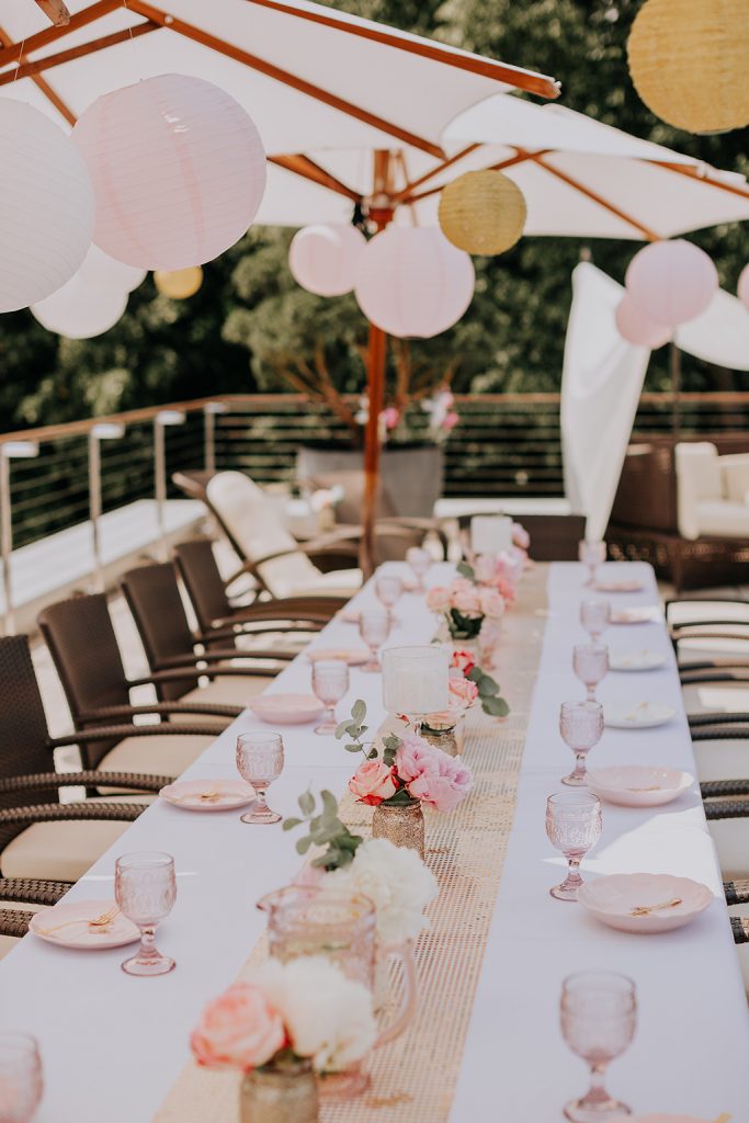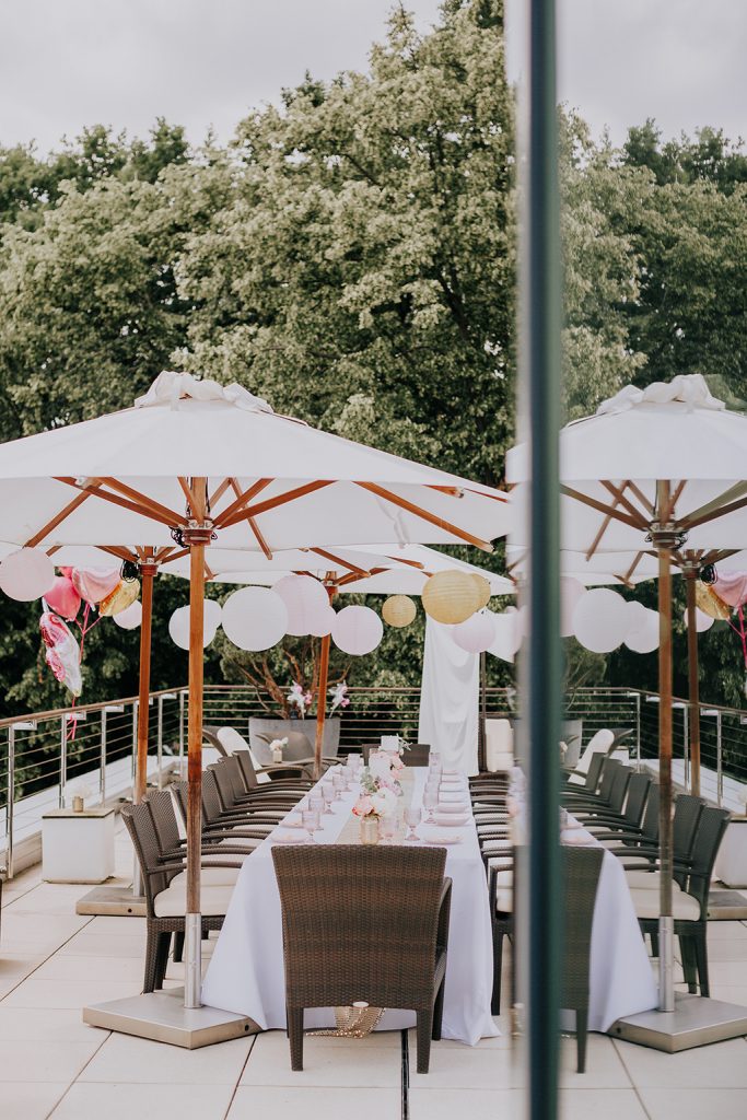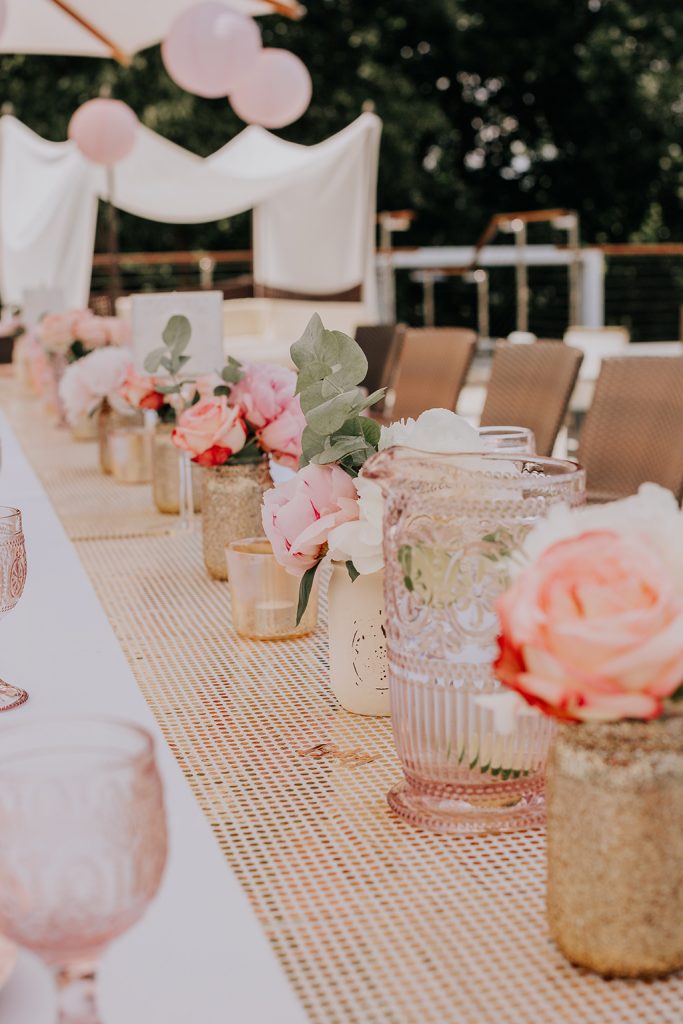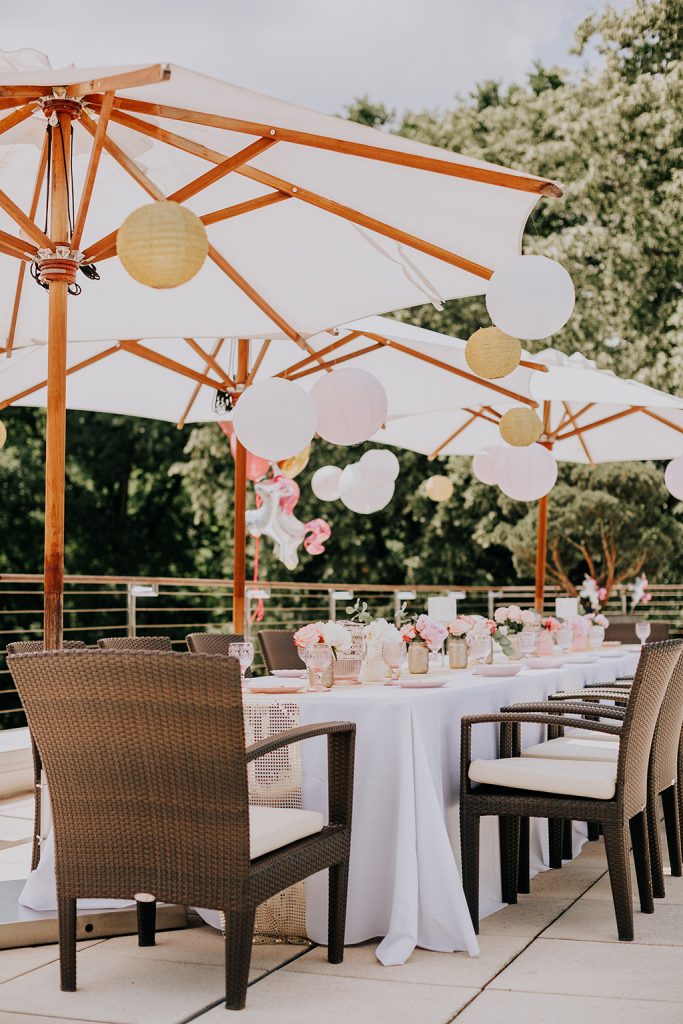 Die Baby Party für Elke fand auf einem privaten Rooftop in Nürnberg statt. An einem Samstagnachmittag nahmen hier an einer langen Tafel, die ganz in Rosa- und Goldtönen gehalten war, die engsten Freunde und Familienmitglieder der werdenden Eltern Platz. Auch durfte hier und da ein Hauch Glitzer nicht fehlen. Und sogar Einhörner waren erlaubt 🙂